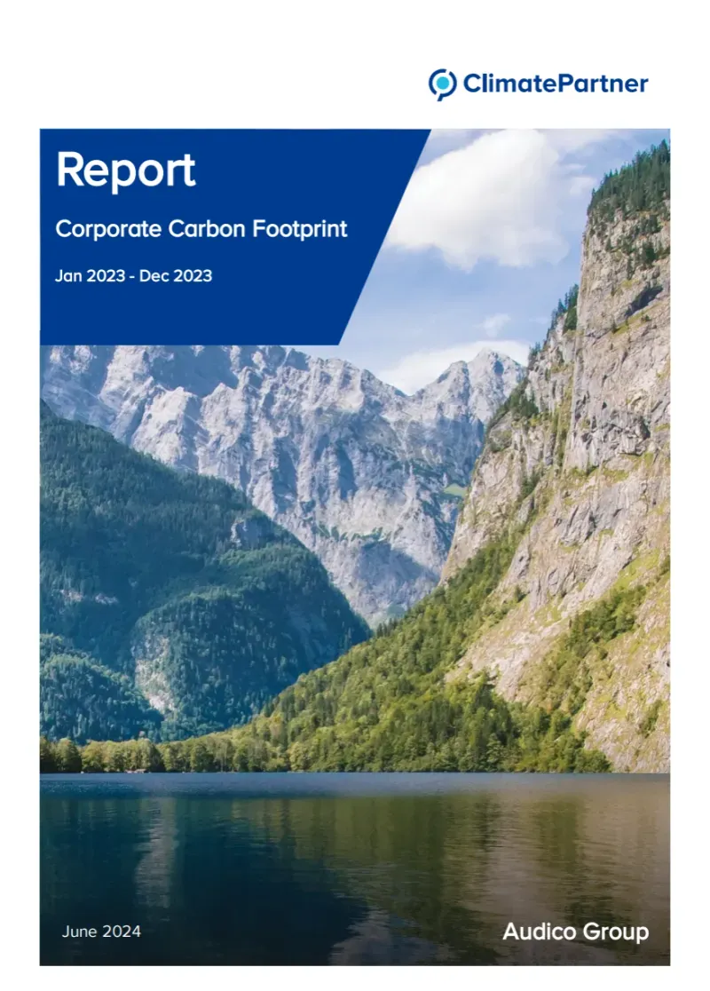 We at Audico Technology have calculated our first climate footprint in partnership with ClimatePartner Sweden AB. ClimatePartner calculates the climate footprint of companies in accordance with several recognized standards, primarily the Greenhouse Gas Protocol Corporate Accounting and Reporting Standard (GHG Protocol). Their methodology is closely aligned with ISO 14064, which ensures comprehensive documentation and compliance with international guidelines. ClimatePartner's structured approach ensures that our climate footprint calculation is robust and credible, facilitating us to take effective strategies for climate action.